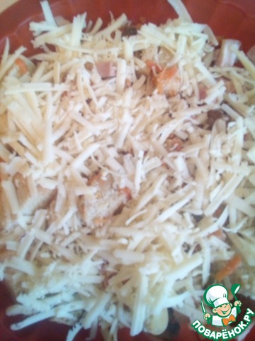 Потереть сыр нв крупной терке и посыпать нашу запеканку.