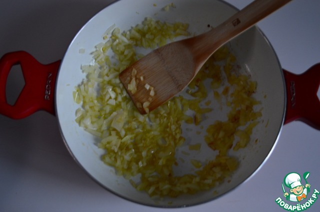 На оливковом масле спассеровать лук и чеснок до мягкости