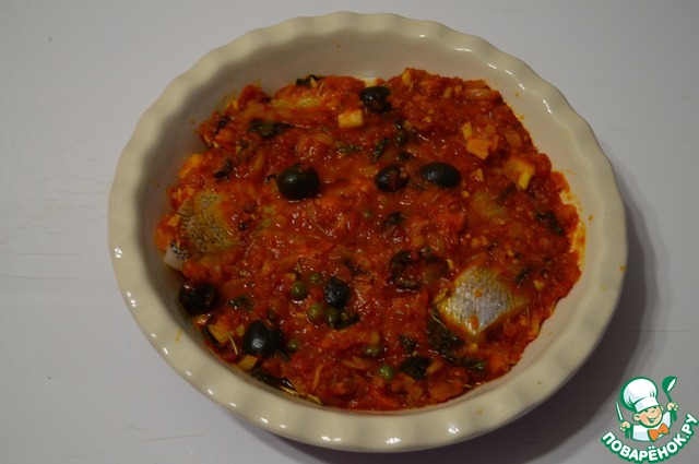 Диетичное и полезное блюдо из рыбы с овощами и оливками в стиле "Прованс"