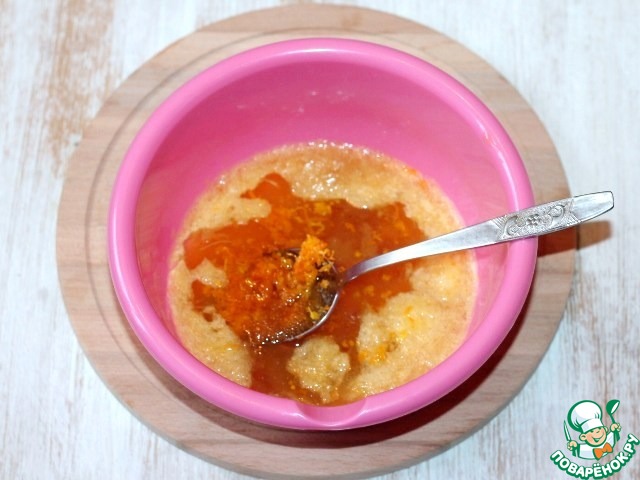 1. Трем цедру апельсина (1 ст. л.) и выжимаем сок (125 мл)