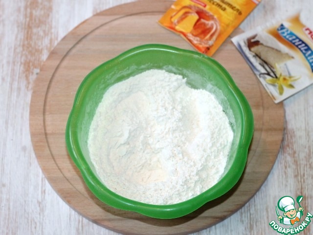 5. Муку смешиваем с разрыхлителем и ванилином, просеиваем.