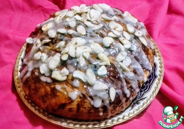 [+5]Перед отправкой в духовку смазала яйцом, посыпала миндалем (не прожаривая его), он в духовке хорошо прожарился во время выпечки