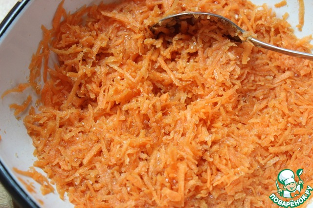 3. Тщательно перемешиваем и оставляем на некоторое время (15-30 минут), чтобы морковь дала сок.