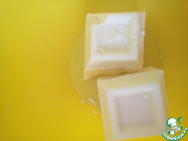 Берем белый шоколад и топим либо в микроволновке или на водяной бане. Температура шоколада не должна превышать 28-30 градусов.