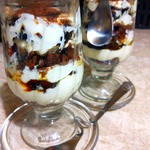 Выкладывать в емкость слоями: сметана с сахаром - печенье - чернослив. Повторить слои 2-3 раза.