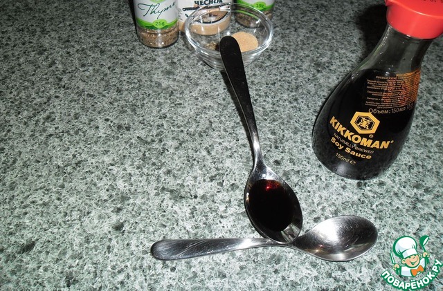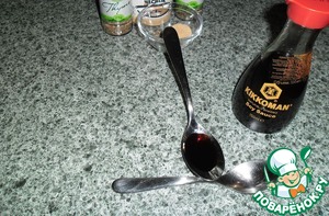 - Соевый соус (Kikkoman натуральный, при желании можно увеличить количество соуса, убрав соль) — 2 ч. л.