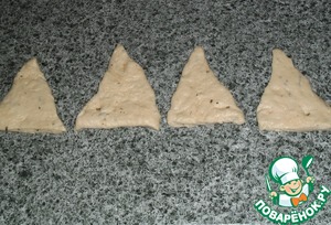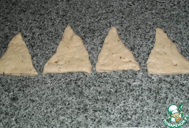 Слегка смазать треугольники раст. маслом, сформовать рулетиками и,