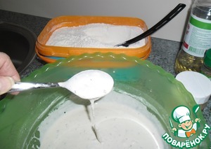 Масса по консистенции сметаны, получилась опара, даем дрожжам ожить, через 20-30 минут поднимется шапочкой пена,