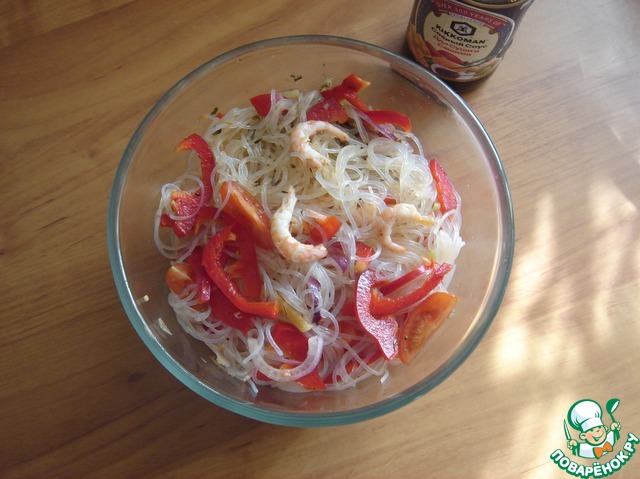 Салат с креветками, фунчозой и овощами с пикантной заправкой. Быстро, вкусно, красиво!