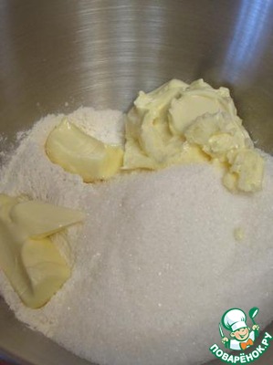 В муку добавить соль, разрыхлитель, масло, сахар.