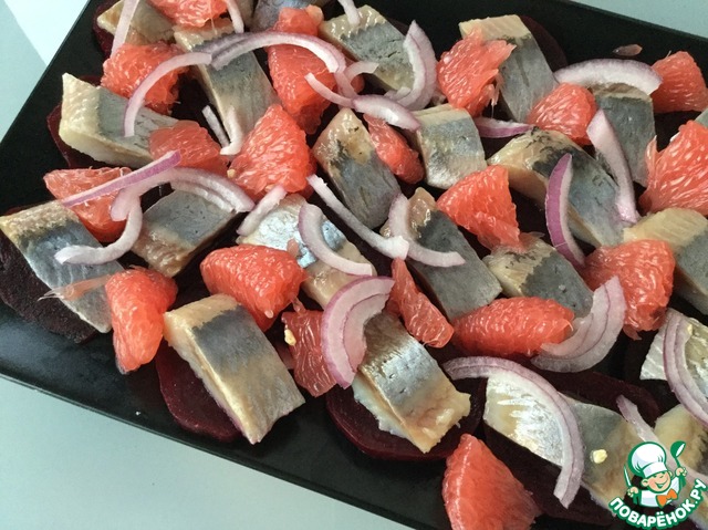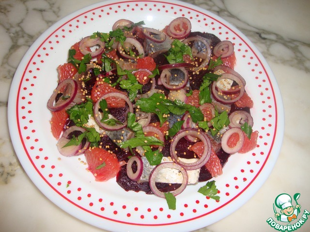 Рецепт «Салат с сельдью и грейпфрутом»: