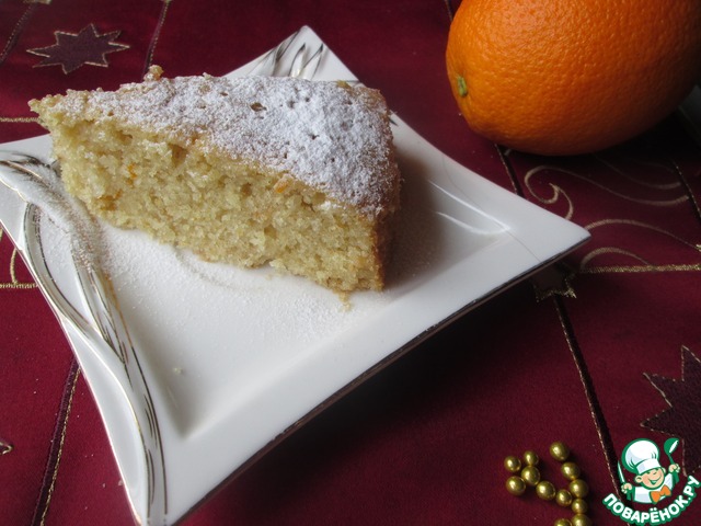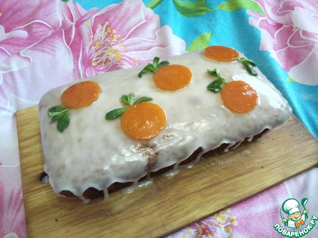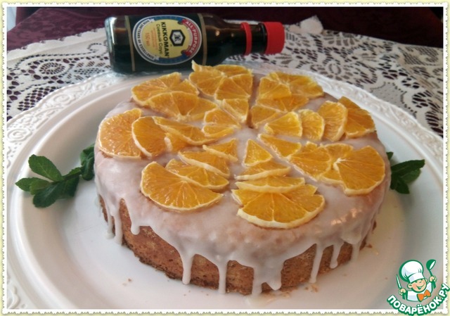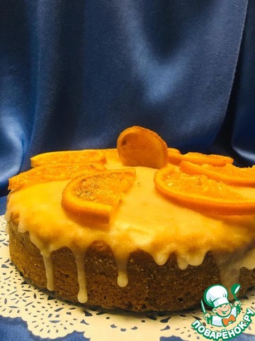 Покрываем манник глазурью. Глазурь довольно быстро подсохла, пористая текстура манника впитала ее влагу. Я дополнила дольками апельсина.