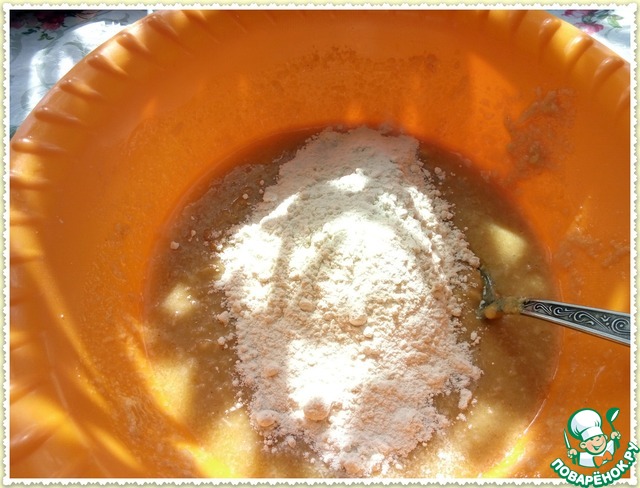 Влить любое растительное масло без запаха (либо растопленный постный маргарин, как в моем случае), снова перемешать. -