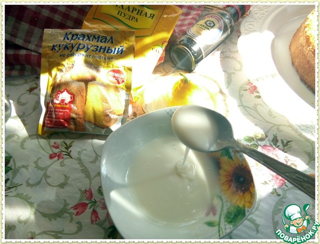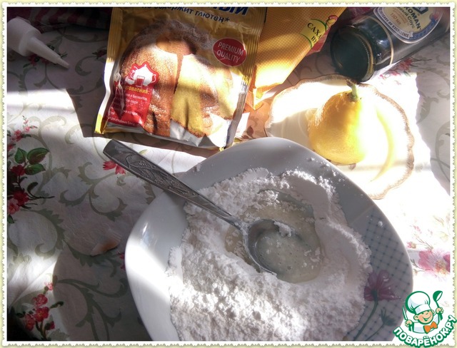 Смешиваем сахарную пудру с кукурузным крахмалом, лимонным соком, ванилином. -