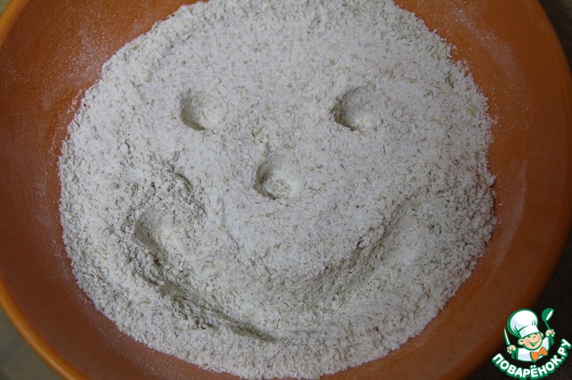 В отдельной емкости смешать муку, соль, овсянку и разрыхлитель.