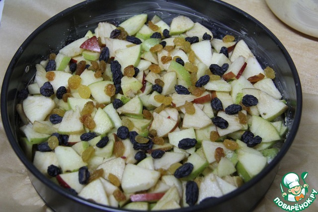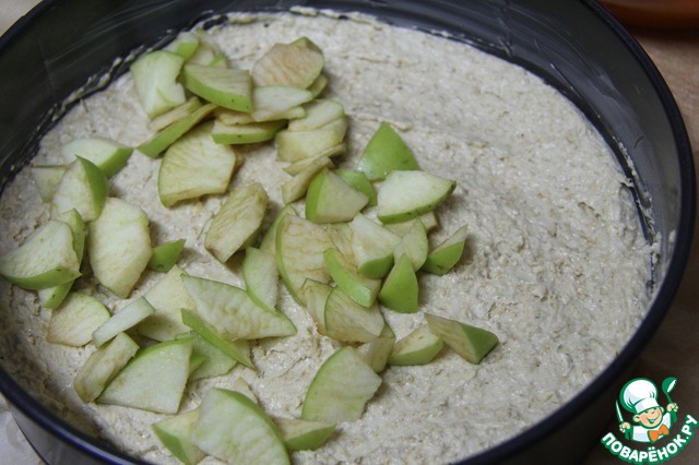 Выложить нарезанные кусочками яблоки (я не очищала, вы - делайте, как вам нравится) -