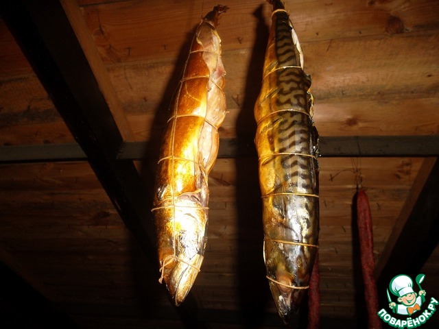 По окончании копчения рыбу аккуратненько извлекаем и вывешиваем в прохладном помещении (или на улице) для проветривания. Или на ночь, или на 12...14 часов - как удобнее. Данная процедура нужна потому, что сразу после копчения рыба имеет ОООчень концентрированный и запах, и привкус дыма. Не знаю, кто как - но не я, не мое семейство такое есть не будет.