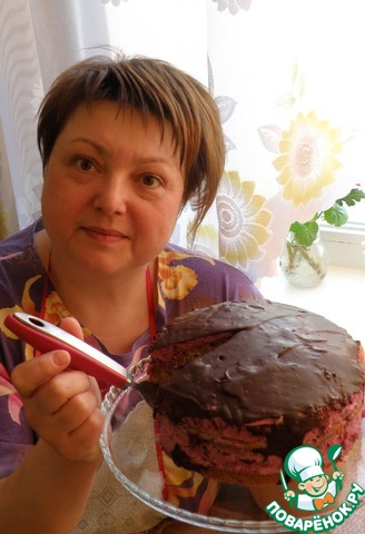 Торт вынуть из холодильника минут за 15 до чаепития и нарезать на порции.