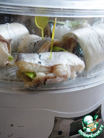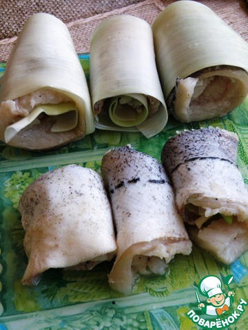 Рецепт «Рулетики паровые из пикши с пореем»: