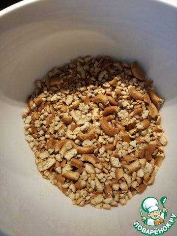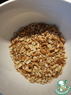 1 шаг, самый утомительный, необходимо растолочь сушки в крошку. Я это делала ступкой, а затем через мешок скалкой.