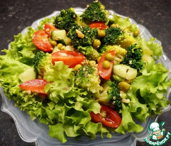 Свежий, сочный, интересный салат с овощами, брокколи и грецким орехом. Заправка - это отдельная песня, ароматная и яркая. Угощайтесь!