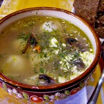 6. Непосредственно перед подачей кладем в суп сметану и зелень.