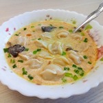 2. В идеале из этого куриного мяса (которое мы вынули из бульона) делаются пельменьки для этого супчика. Но я обычно мяско использую в других блюдах, а покупаю в магазине пельмени с мясом куры.