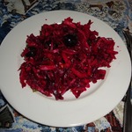 Свёклу и морковь натираем на тёрке и - тоже в салатник.
