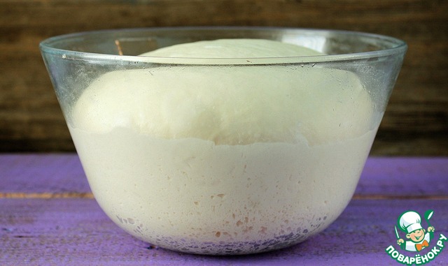 • Сначала приготовим тесто на булочки. Тесто для этих булочек я использовала холодного брожения: Смешать дрожжи (я использую свежие), соль и сахар. Перемешать и добавить воду. Перемешать. Добавить муку. Вымесить тесто и добавить растительное масло. Месить еще не более 5 минут. Миску с тестом накрыть пищевой пленкой и убрать в холодильник на 8-12 часов. За 1-2 до приготовления, тесто доставить из холодильника и дать ему прогреться.