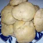 Всыпать просеянную муку смешанную с ванилином и сахарной пудрой, замесить мягкое тесто. Оно не должно липнуть к рукам, но и плотным оно не будет.
