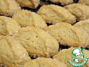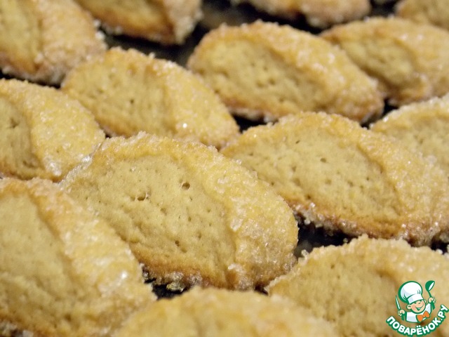 Выпекать при t= 180 до золотистого цвета, примерно 20 мин. Сразу отделить печенье от противня и только потом дать остыть. Иначе потом не оторвете не поломав его.