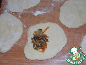 Постное дрожжевое тесто обмять. Раскатать толщиной примерно 0,5-0,7см.