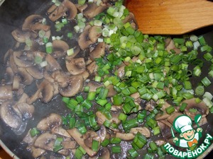 Грибы не крупно нарезать и обжарить в небольшом количестве растительного масла почти до готовности.