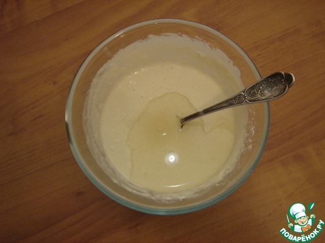 Выливаем из стакана оставшуюся воду, сахар ещё 1/2 ст л, масло растительное 1 ст л, соль и муку. Венчиком всё соединяем и отправляем в тёплое место на 30 минут.