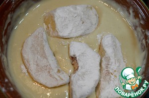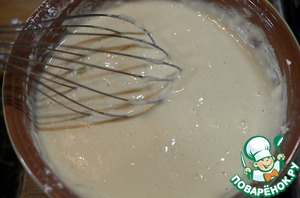 Сделаем кляр, смешав муку, яйцо и добавив воды столько, чтобы получилась консистенция сметаны.