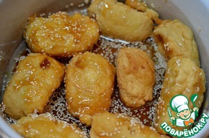 Этот Китайский десерт, переводится как "яблоки в карамели". Но здесь яблоки не просто в карамели, но ещё и обжаренные в кляре. Попробуйте, - такой десерт непременно понравится и взрослым, и детям.