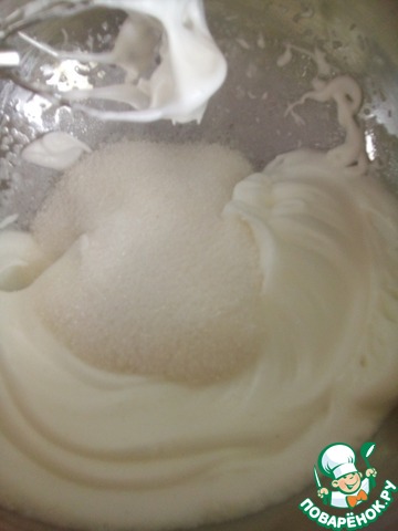- Белок яичный (Лучше взбиваются комнатной температуры, но я взбивала холодные.) — 3 шт