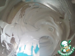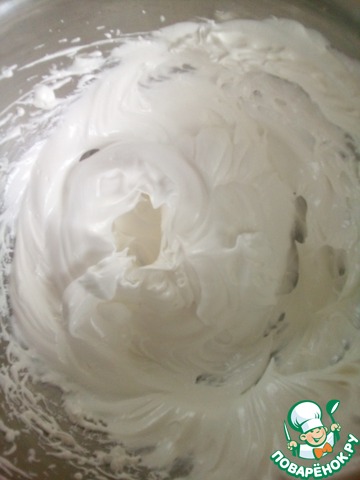 Взбиваем миксером сначала на минимальной скорости пару минут, потом на максимальной до белых густых пиков