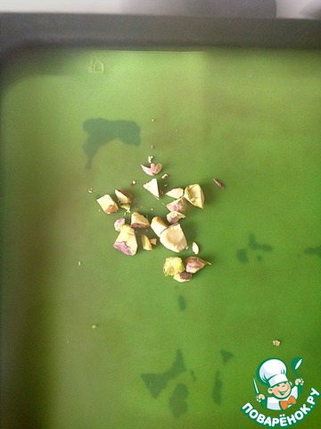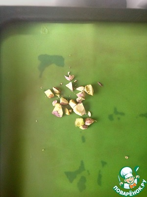 На противень выстилаем силиконовый коврик или пекарскую бумагу. Если бумага, то ее необходимо смазать маслом. Чистим и режем фисташки.