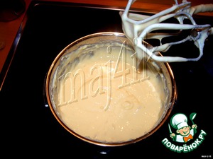 Миксером по одному втереть яйца, каждый раз хорошенько и тщательно вымешивая.
