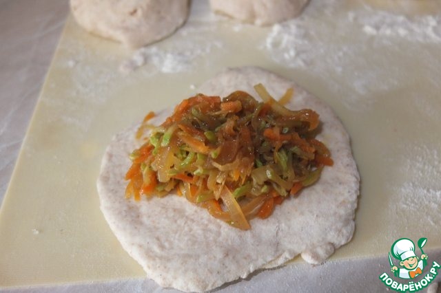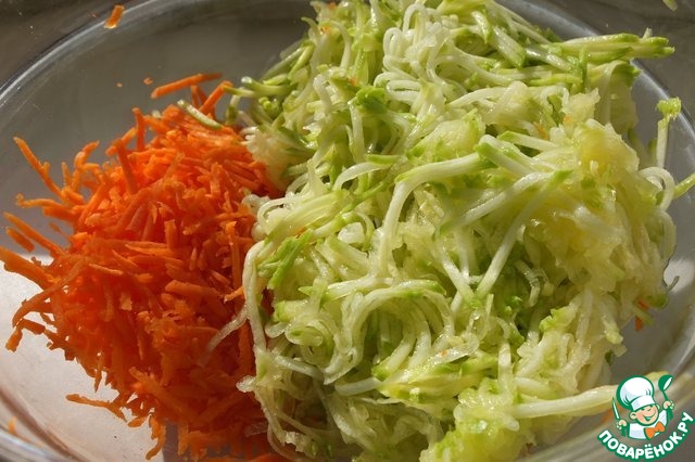 • Для начинки морковь и кабачки трем на мелкой терке.