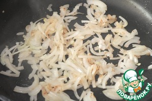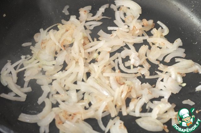 • Луковицу режем на четвертинке и обжариваем до золотистого цвета.