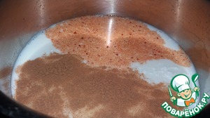 Добавляем к молочной смеси растопленный шоколад. Перемешиваем хорошо и оставляем на 10 мин. (Я готовила из меньшего количества ингредиентов, на 2 чашки, в рецепте же привожу оригинальные пропорции).