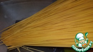 Сварить спагетти в чуть подсоленной воде до состояния аль денте.