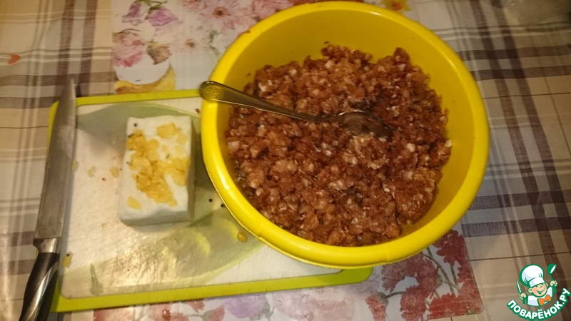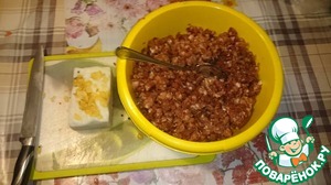Добавляем в фарш сало, водку и все остальные ингредиенты.