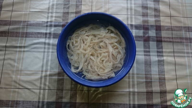 Замачиваем череву в холодной воде, чтобы смыть соль. -