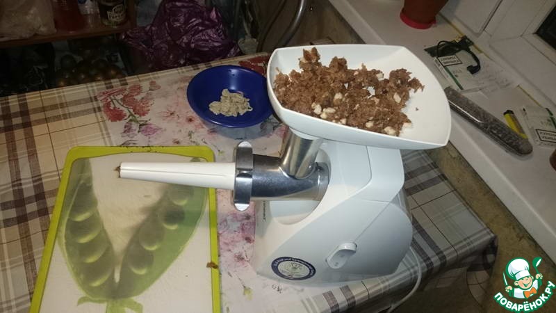 На мясорубку устанавливаем решетку с крупными отверстиями. У меня с диаметром 0,5 см.