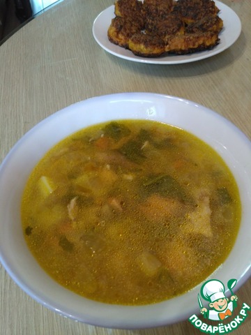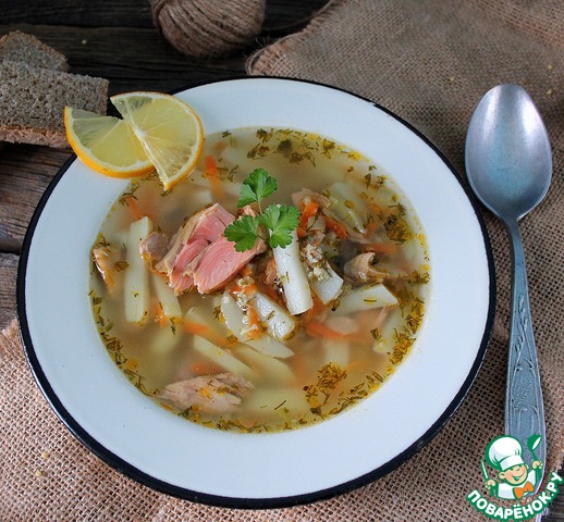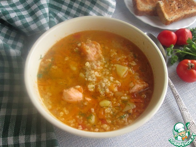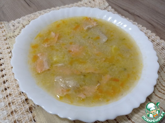 Суп с пшеном и лососем