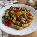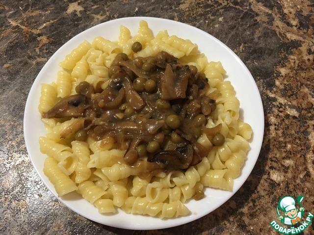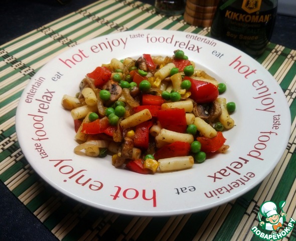 Рецепт «Макароны с перцем, грибами и горошком»: