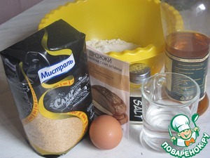 Добавить остальные продукты (кроме яйца) - 150 г муки, 50 мл воды, щепотку соли, 60 г горчичного масла и 70 г сахара Мистраль (тростниковый нерафинированный полезнее белого сахара).